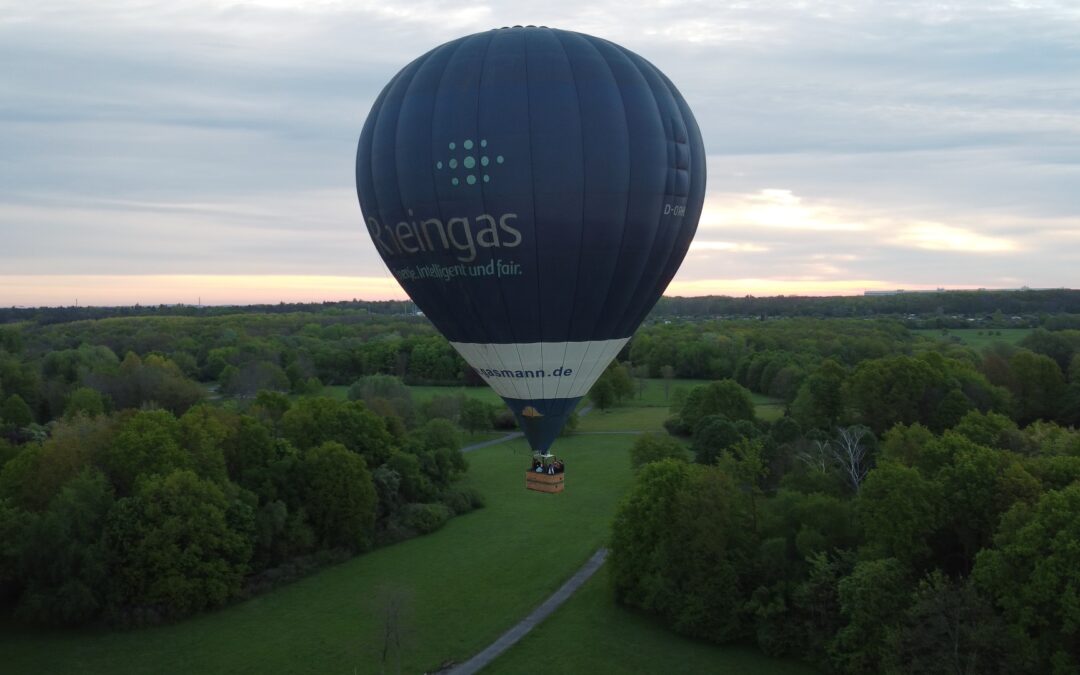 Während oben alles ruhig und friedlich wirkte, zeigte sich die Landung etwas holprig. Mit einigen Turbulenzen landete der Ballon schließlich in Nähe des BMW-Werks, wo eine Sekttaufe schon darauf wartete, die Nerven der frischgebackenen Ballonfahrer zu beruhigen. Alles in allem hat es sich gelohnt so lange zu warten – Victoria und Josef zeigten sich begeistert von diesem Erlebnis der Extraklasse.