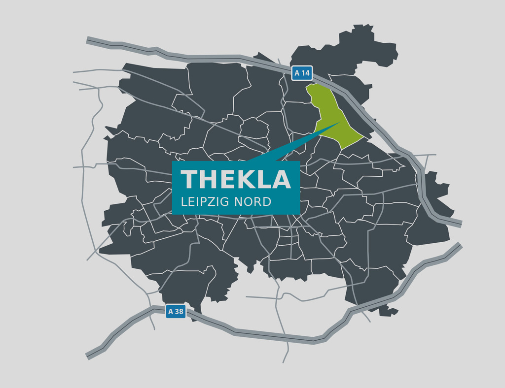 Unsere Objekte nördlich des Bahnhofs Thekla liegen im Herzen des Stadtteils. Egal, ob Sie schnell in die Innenstadt oder als Pendler zur Messe, zu BMW, Porsche oder in den Wurzener Raum wollen - dank der guten Anbindung mit öffentlichen Verkehrsmitteln, der Bundesstraße B 2 und der Autobahn A 14 sind Sie schnell an Ihrem Ziel. Der 'Bagger' und die Parthe befinden sich in unmittelbarer Umgebung. Hier können Sie wunderbar entspannen.