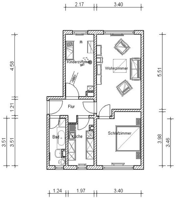 Die Wohnung wird derzeit saniert. Alle Innentüren werden mit weißen Türen und Zargen versehen. Der Fußboden erhält einen PVC in Holzoptik. Das Bad ist neu gefliest und mit einer Wanne versehen.