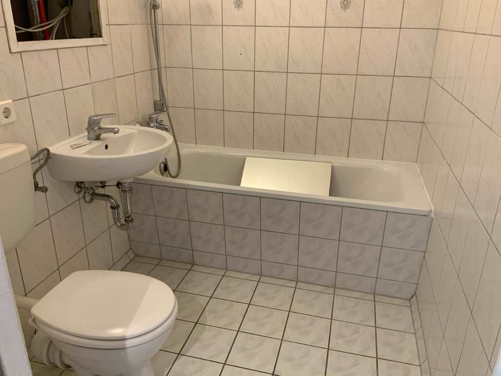 Die Wohnung wird derzeit neu tapeziert. Die Innentüren werden erneuert. Das Bad ist gefliest und mit einer Wanne versehen.