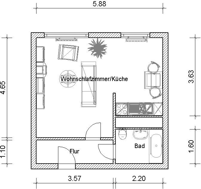 1-Raumwohnung mit offener Wohnküche