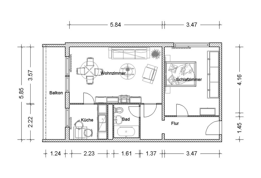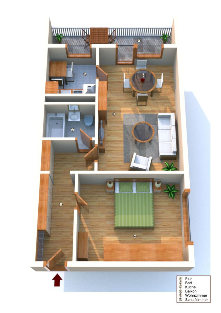 2-Raumwohnung mit Duschtasse und tollem Balkon