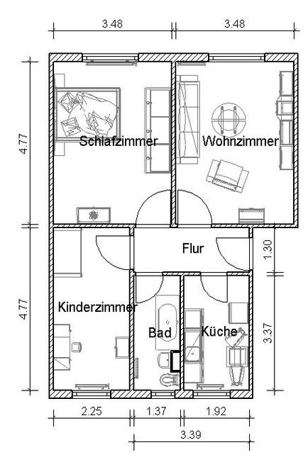 Die Wohnung ist bezugsfertig vorgerichtet. Das Bad ist gefliest und mit einer Wanne versehen. Der Fußboden hat einen modernen PVC in Holzoptik erhalten. Alle Innentüren sind weiß.