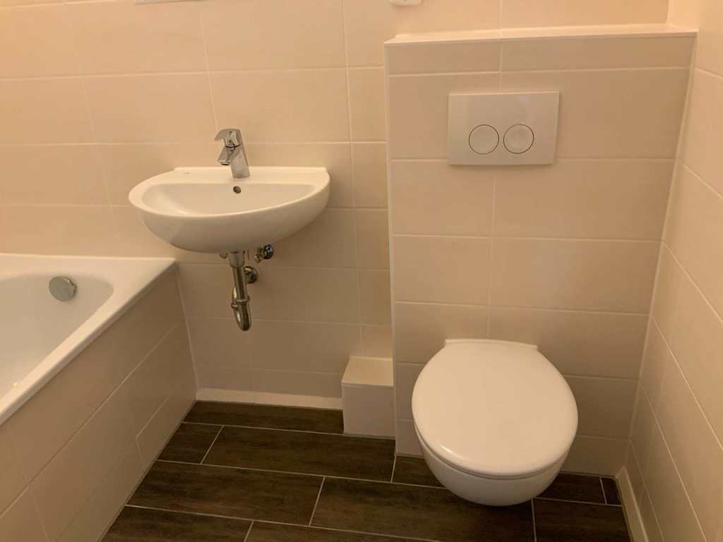 Alle Innentüren sind weiß und mit einer Zarge versehen. Das Bad ist neu gefliest und mit einer Wanne versehen. Der Fußboden hat einen PVC in moderner Holzoptik.