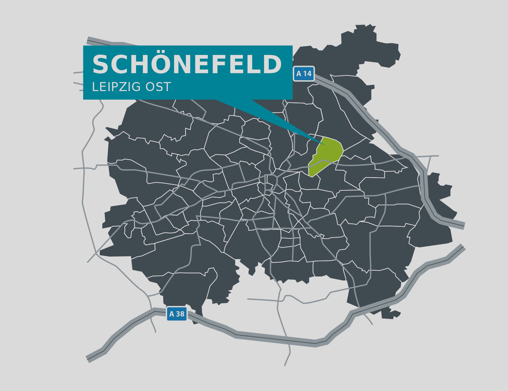 Das Wohnobjekt liegt nordöstlich des Leipziger Stadtzentrums in ruhiger Umgebung. Trotzdem genießen Sie bei uns alle Vorzüge einer Großstadt. Ob mit öffentlichen Verkehrsmitteln oder mit dem eigenen Auto - Sie sind schnell im Stadtzentrum oder auf der Autobahn A 14. Die Einkaufspassagen 'Sonnenwall' und 'Permoser Eck' befinden sich mit zahlreichen Arztansiedlungen in unmittelbarer Nähe. Mehrere Parks laden zum Spazierengehen und Joggen ein. Im Sommer ist das 'Schönefelder Sommerbad' Anziehungspunkt für Groß und Klein. Hier können Kinder nach Lust und Laune spielen. Auch Kulturinteressierte kommen nicht zu kurz: Das Schloss Schönefeld wartet regelmäßig mit Veranstaltungen auf.