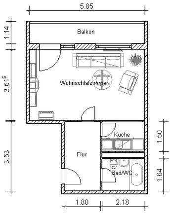 Bezugsfertie 1-Raumwohnung mit Balkon